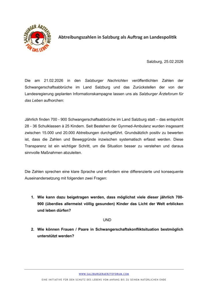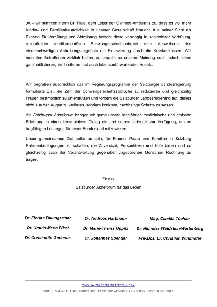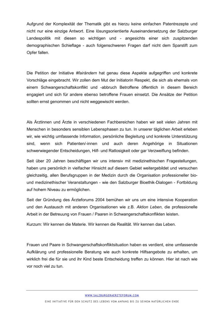 • Salzburger Ärzteforum unterstützt Petition