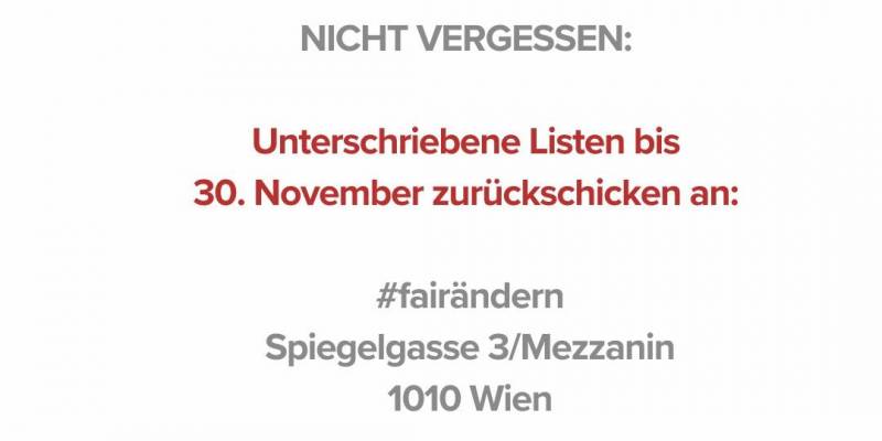 Unterschriftenliste -> hier <- herunterladen oder unter info@fairändern.at bzw. 0677 / 6448 7441 kostenlose Listen anfordern!